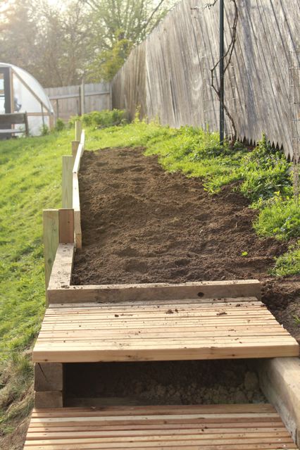 | a temporary retaining solution, but my recent thought was, why not plant some veggies up here? |
